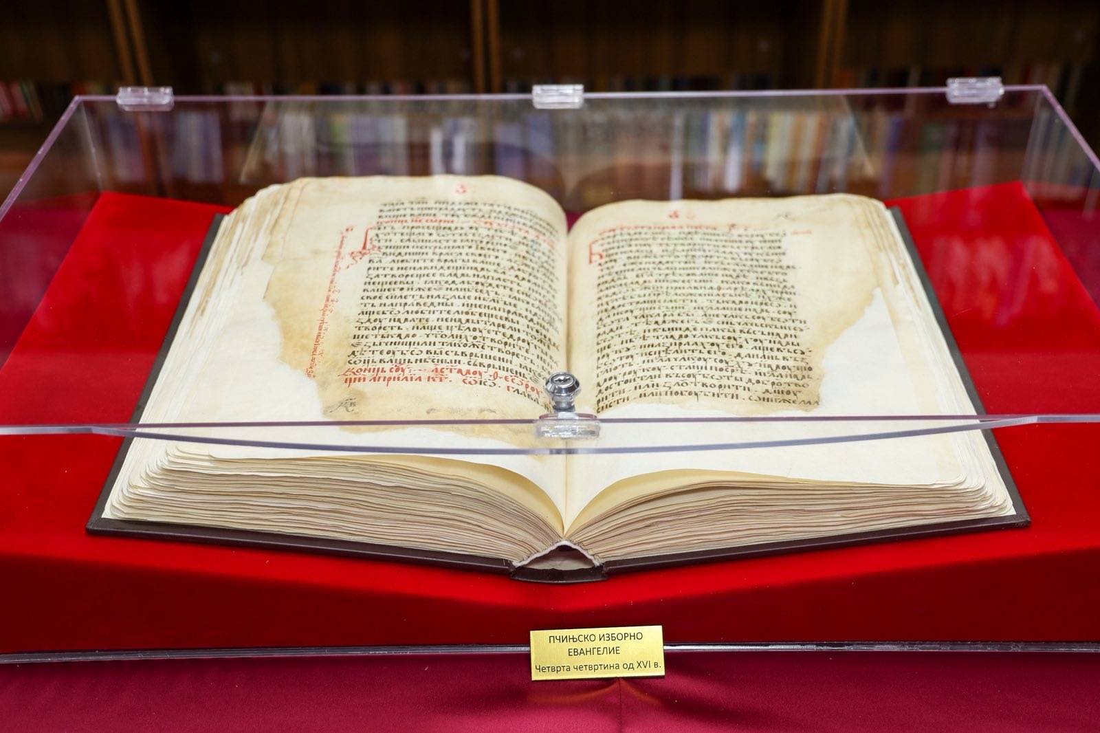 Денес, во свечена и емотивна атмосфера, во Националната установа Библиотека „Григор Прличев“-Охрид, беше одбележано враќањето на „Пчињското изборно евангелие“-најстариот ракопис од реткиот фонд на библиотеката, кој по повеќе од четири века повторно е достапен во градот каде што зборот отсекогаш живеел.