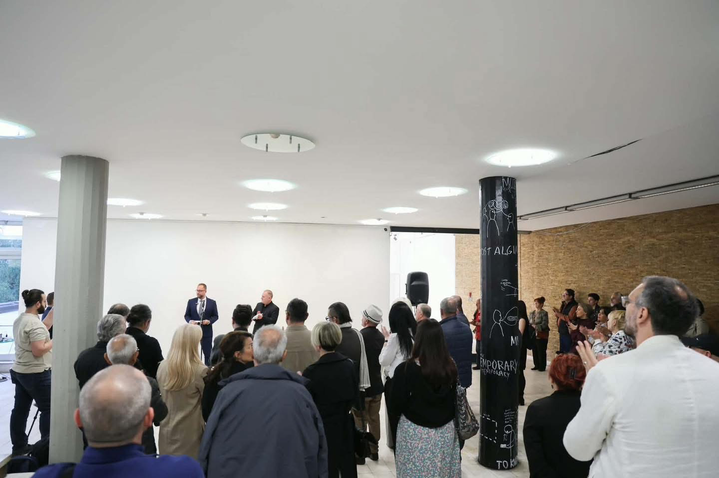 „По речиси една деценија, вечерва од овој простор исполнет со креативна енергија, испраќаме силна порака, порака за поддршка, континуитет и јасна определба дека уметноста мора и треба да има свое заслужено место во нашето општество. Со вечерашнава изложба се обновува значајната мерка за откуп на ликовни дела, предвидена во Програмата на Владата, која последен пат беше реализирана во 2016 година“, рече министерот Зоран Љутков на отворањето на изложбата на откупени ликовни дела на Конкурсот на Министерството за култура и туризам за 2026 година.