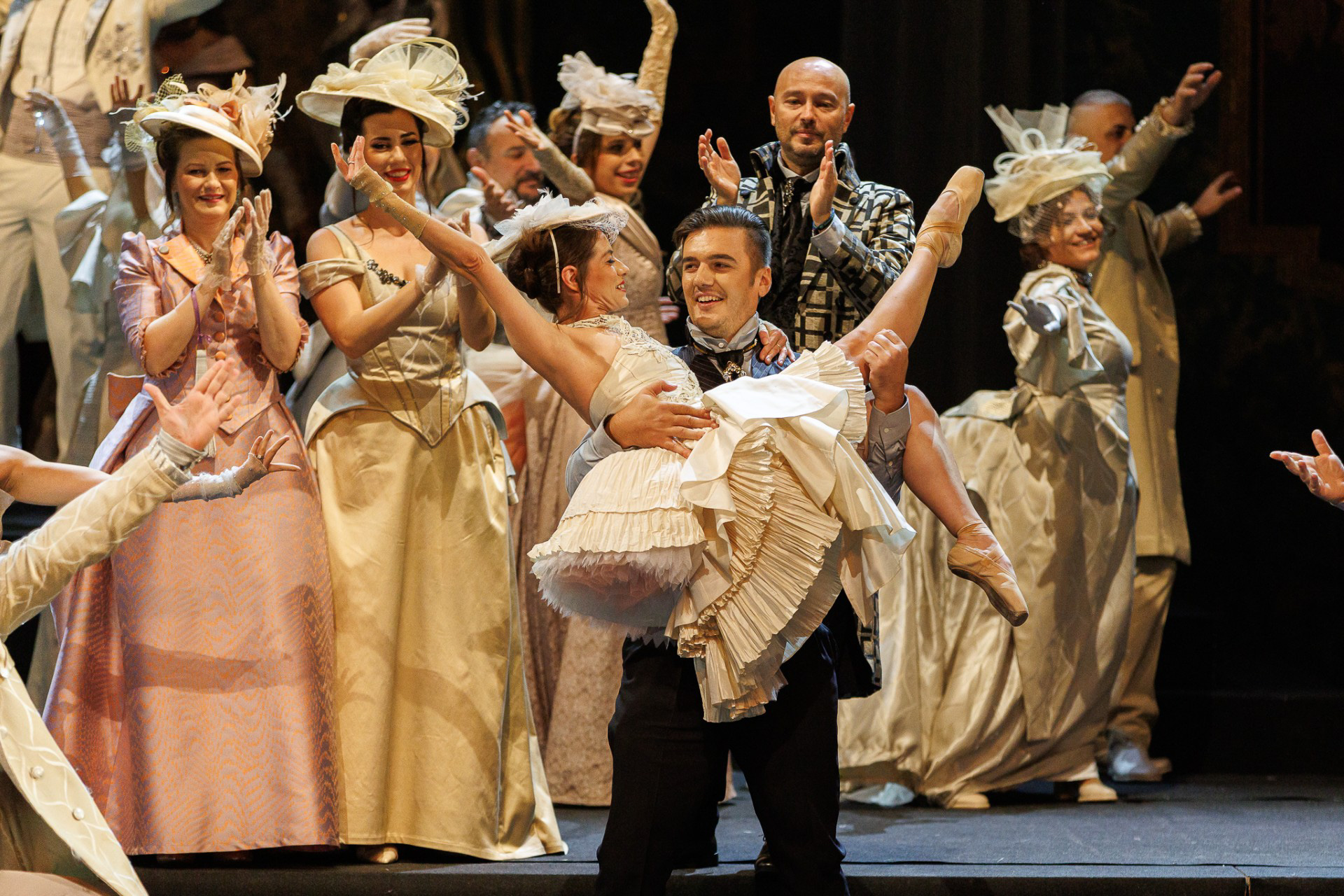 Оваа изведба, под диригентската палка на Бисера Чадловска и во режија на Љупка Јакимовска, нуди уште една можност за љубителите на уметноста да уживаат во празнична вечер исполнета со музика, раскош и многу смеа.