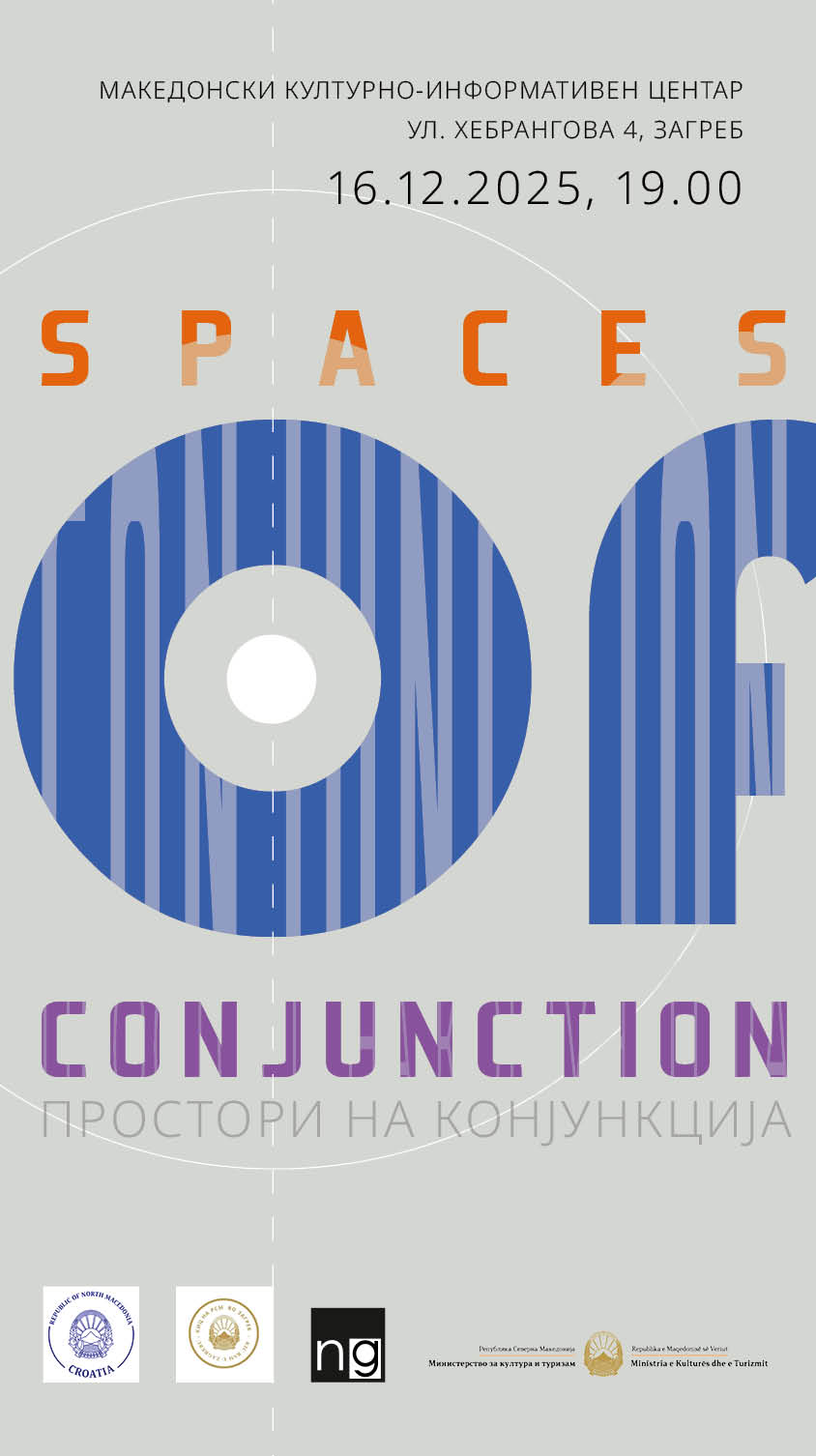 По претставувањето на „Простори на конјукција“ во културно-информативните центри на РС Македонија во Софија, во Белград и во Истанбул, проект на Националната галерија од областа на меѓународната соработка, како последна дестинација е Македонскиот културно-информативен центар во Загреб, Република Хрватска. Директорката на Центарот, Мими Ѓоргоска-Илиевска, и директорот на Националната галерија, Али Синани, ќе се обратат на отворањето, ќе ја воведат публиката во контекстот на проектот и ќе ги претстават авторите на уметничката компилација со наслов „Простори на конјукција – Картографија на фрагментот: Наративи, граници, меморија“. Учесници во изложбата се: Роберт Јанкулоски, Велимир Жерновски, Моника Мотеска, Шќипе Мехмети, Ирена Паскали, Михаела Јовановска, Ѓорѓе Јовановиќ, Ацо Станкоски, Иванчо Талевски, Жанета Вангели, и Марија Сотировска.