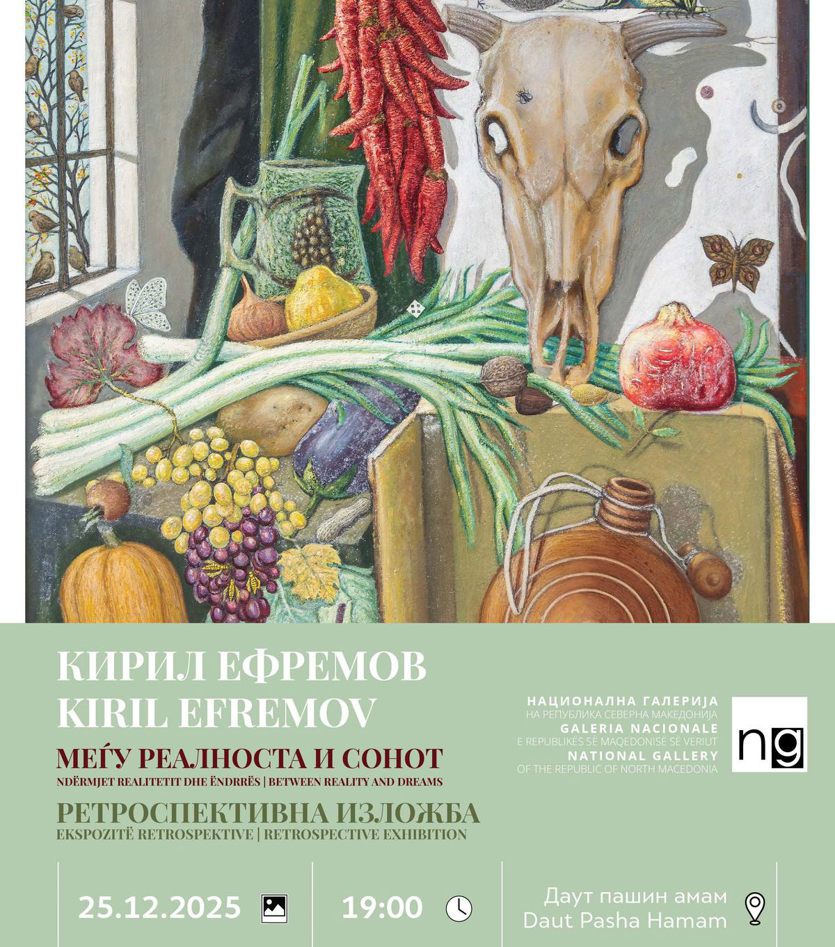 Утревечер во 19:00 часот во Даут-пашиниот амам ќе биде отворена ретроспективната изложба „Меѓу реалноста и сонот“ на уметникот Кирил Ефремов.