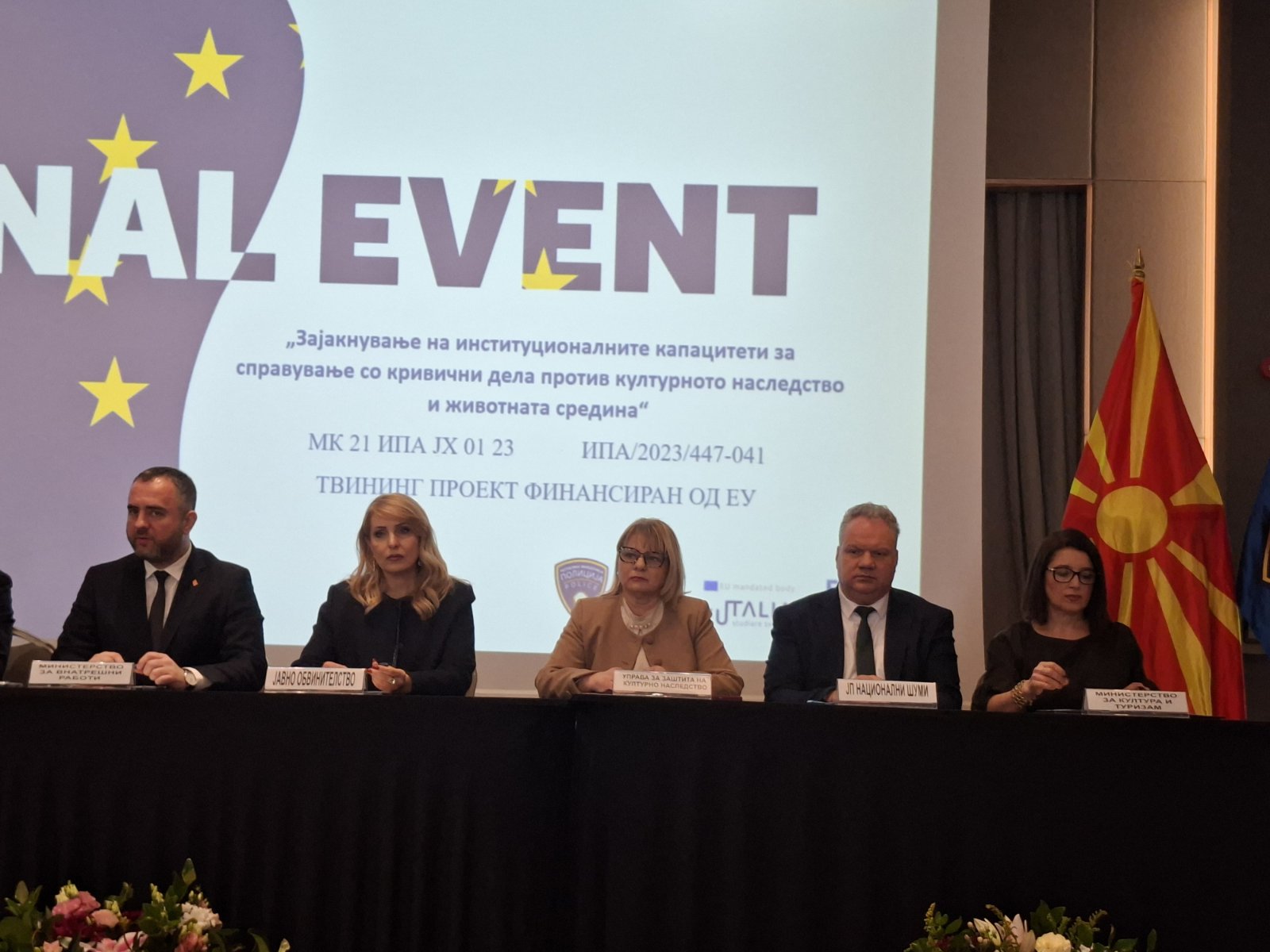 Државниот секретар во Министерството за култура и туризам Марија Станчевска Ѓоргова денеска се обрати на Завршниот настан на Твининг проектот „Зајакнување на институционалните капацитети во справувањето со кривични дела против културното наследство и животната средина“.